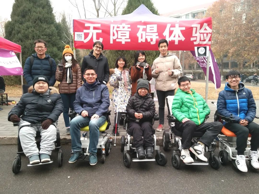 校園無障礙體驗活動合影(前排左一:陳斌,前排左三:矣曉沅,前排左四:朱曉鵬)