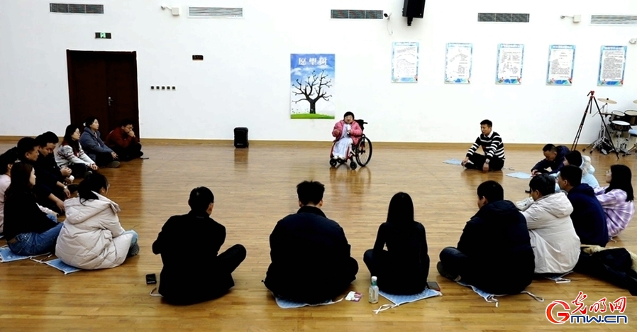 魏瑞紅一手搖著輪椅,一手拿著話筒,微笑著與大家互動。從2025年開始,作為國家二級心理咨詢師的魏瑞紅,開始參與到這所學(xué)校的心理咨詢與教學(xué)當(dāng)中。