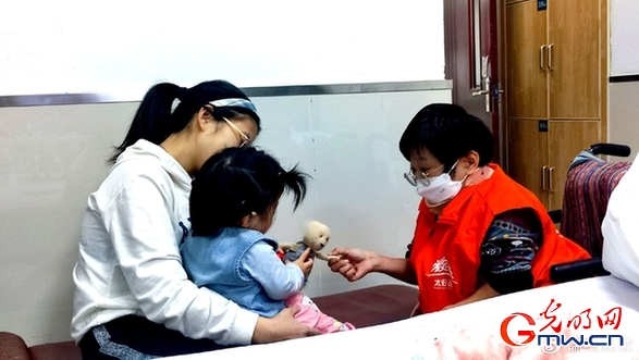 圖為魏瑞紅為“瓷娃娃”小病友做心理輔導(dǎo)