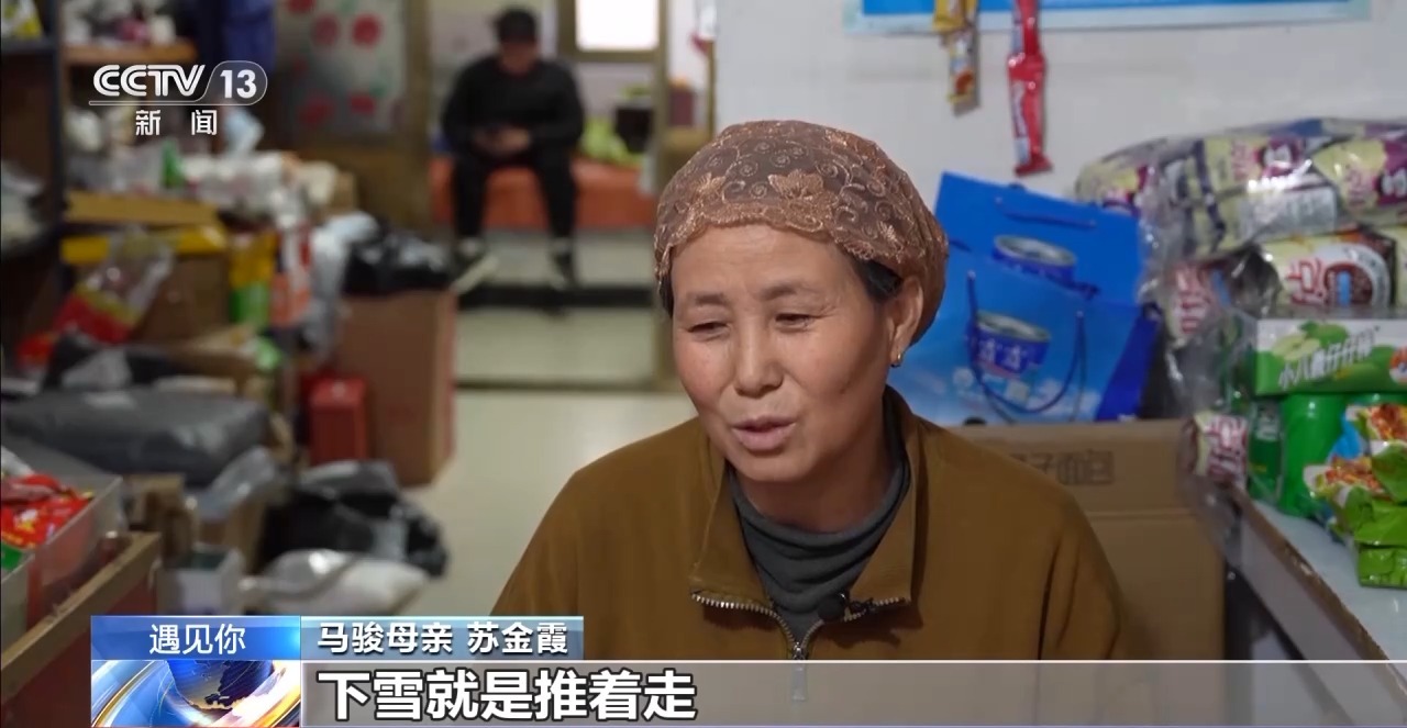 馬駿母親 蘇金霞:下雪就推著走,自行車太滑了,一個手扶著娃娃,一個手扶著車子,推著走。