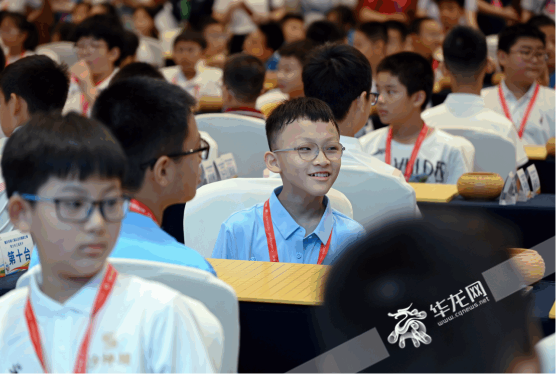 圖為重慶市第七屆運(yùn)動會圍棋賽項比賽現(xiàn)場雨雨(化名)開心的等待比賽開始