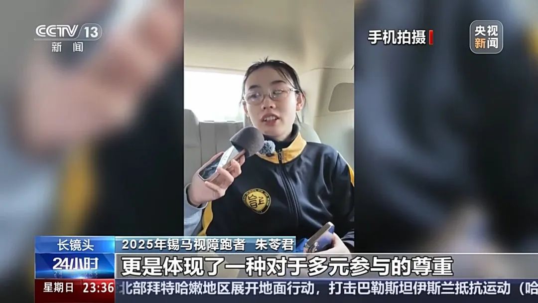 3月23日清晨,2025無(wú)錫馬拉松鳴槍開賽,其中一位特別的跑者備受關(guān)注。無(wú)錫首位視障教師朱苓君在陪跑員的協(xié)助下,成功完成了人生第一個(gè)5公里。2025年錫馬視障跑者朱苓君:很小的時(shí)候十年之前我就聽說(shuō)錫馬了,我畢竟視力障礙活動(dòng)不是很方便,所以我經(jīng)常進(jìn)行室內(nèi)的跳繩還有呼啦圈,游泳我也比較喜歡,我會(huì)蛙泳和仰泳。