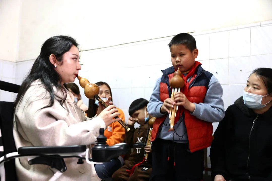 教孩子們吹葫蘆絲和竹笛