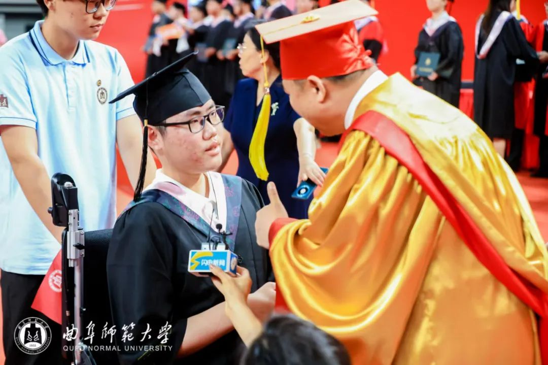 鄭重地將學(xué)士學(xué)位證書遞到他手中