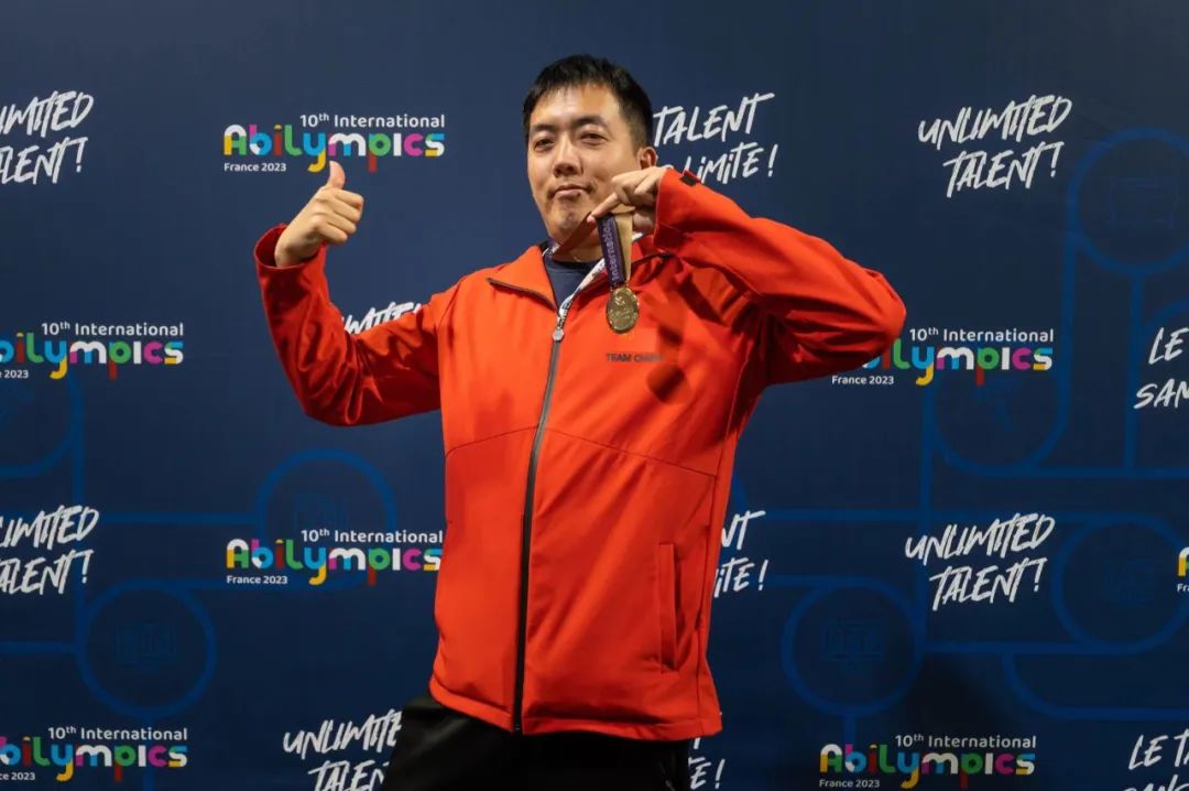 2023年,在法國(guó)梅斯舉辦的第十屆國(guó)際殘疾人職業(yè)技能競(jìng)賽上,面對(duì)賽題突增至7頁(yè)、語(yǔ)言切換為法語(yǔ)的極限挑戰(zhàn),他以每分鐘320字的“飛手”速度提前50分鐘完成操作,并以近乎完美的還原度摘得金牌,榮膺中國(guó)代表團(tuán)唯一的“最佳選手獎(jiǎng)”。