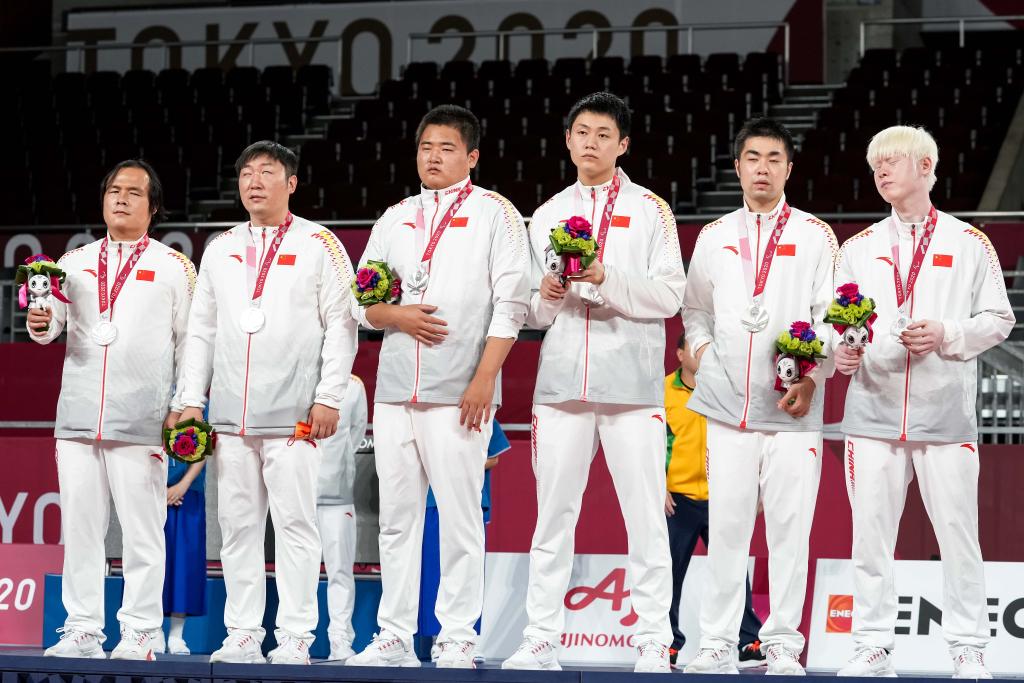 圖為東京殘奧會(huì)上,中國(guó)男子盲人門球隊(duì)獲得亞軍