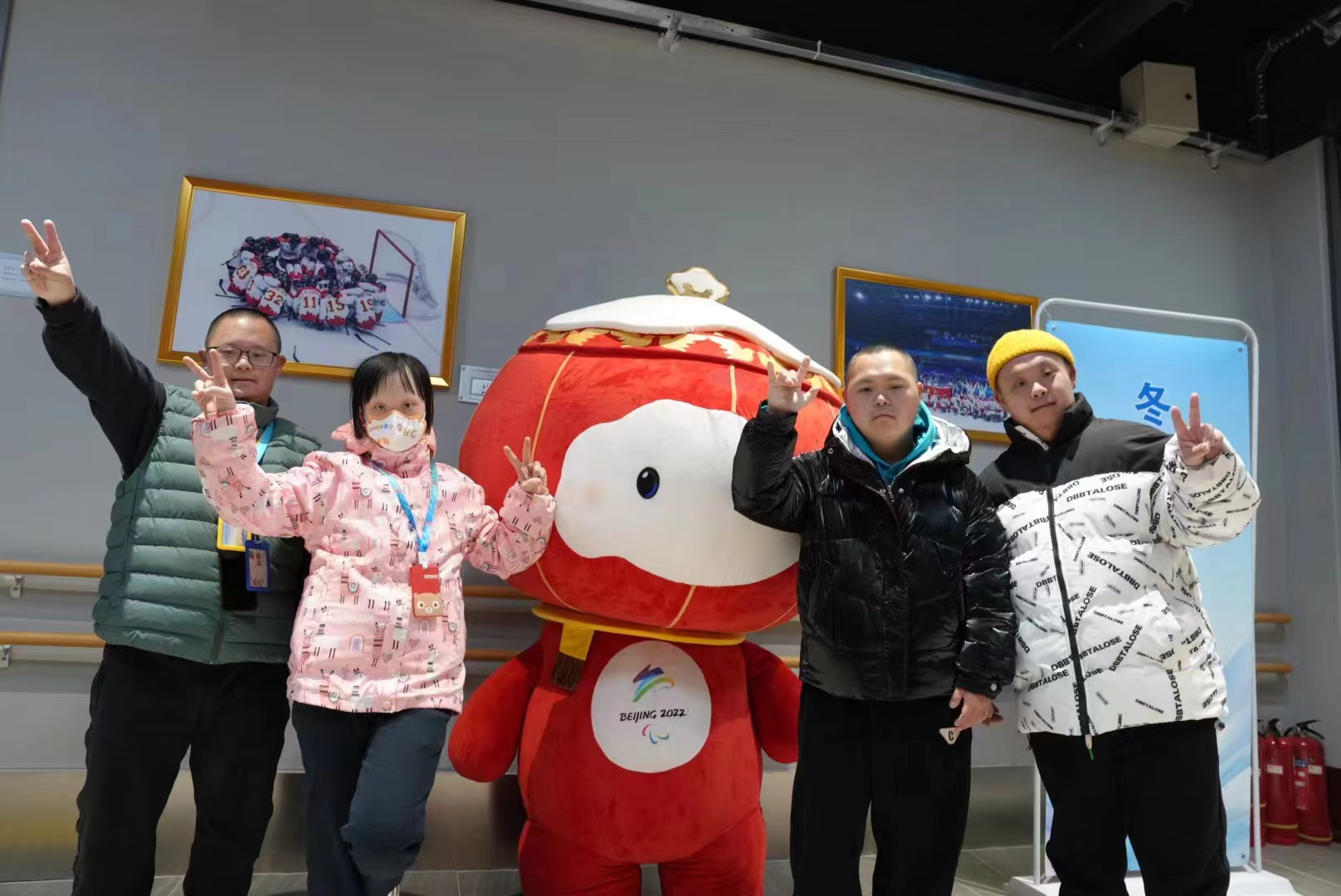 圖為活動(dòng)現(xiàn)場(chǎng)殘疾人與北京冬殘奧會(huì)吉祥物“雪容融”合影
