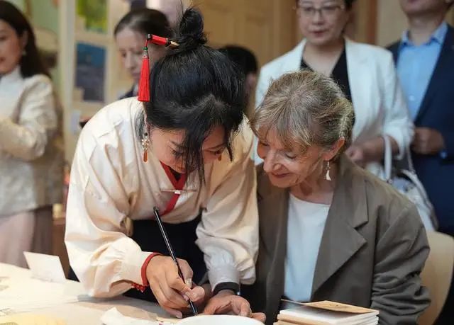 9月3日,一名觀眾在中國殘疾婦女文創(chuàng)作品展上體驗彩繪木梳。新華社記者 侯昭康 攝