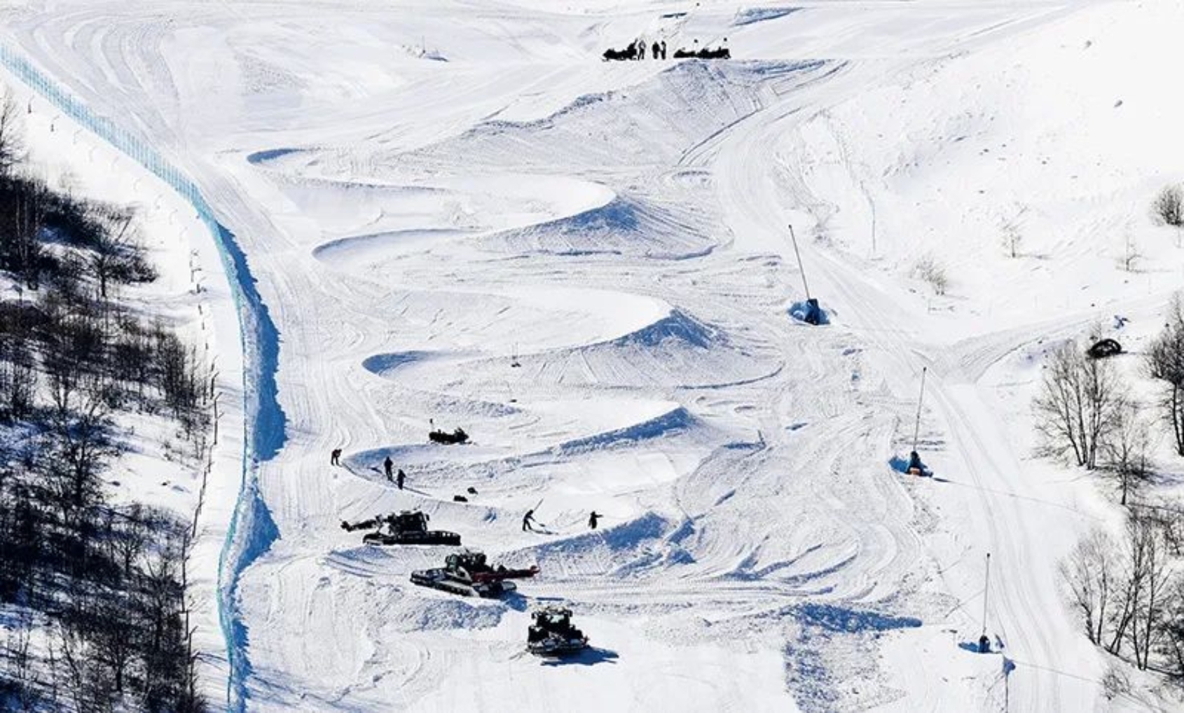 2022年2月23日,北京冬奧會剛剛落下帷幕,河北張家口賽區(qū)云頂場館群迅速進入冬殘奧會轉(zhuǎn)換期,賽道二次塑型、張貼冬殘奧標(biāo)識、殘奧景觀布設(shè)等工作全面展開,備戰(zhàn)即將到來的北京冬殘奧會。這是工作人員在云頂滑雪公園進行賽道二次塑型作業(yè)。視覺中國 武殿森/攝