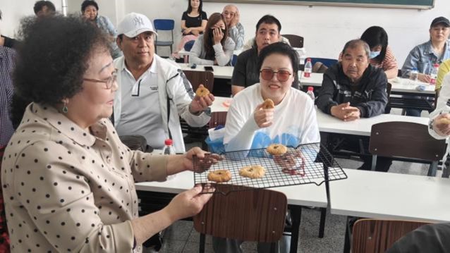 圖為殘疾人學員品嘗學習成果——新烤出來的“桃酥”
