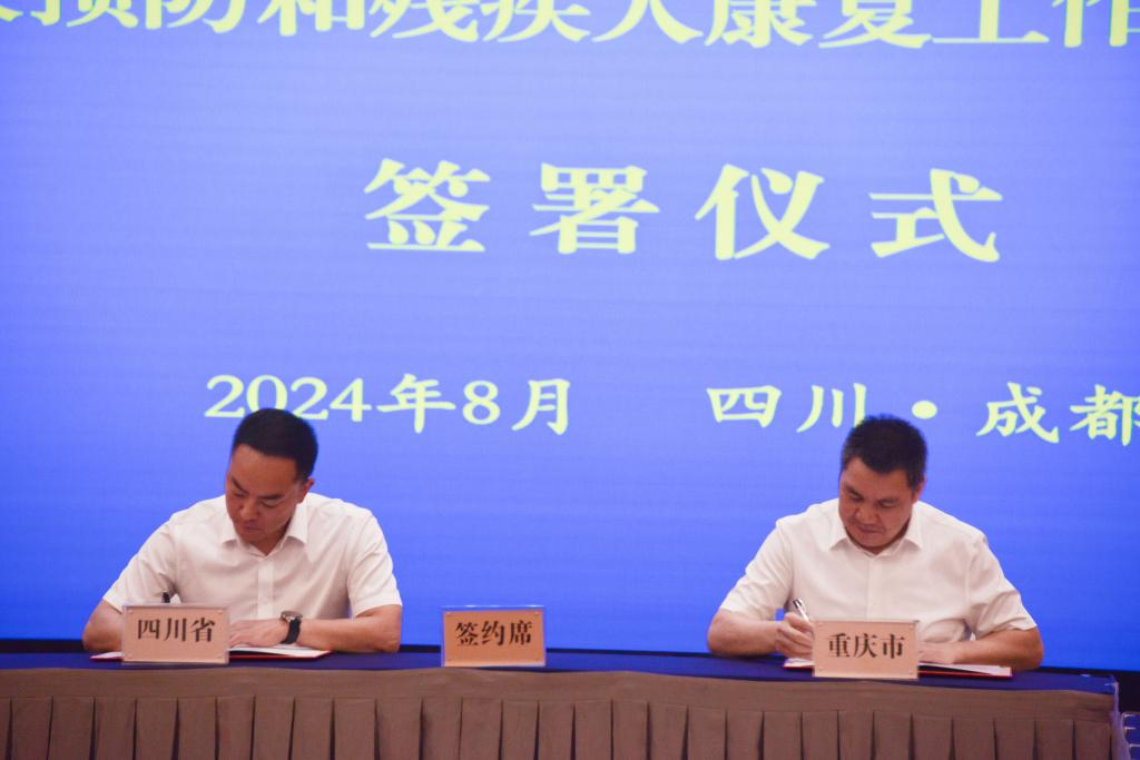 圖為川渝兩地簽署《川渝殘疾預(yù)防和殘疾人康復(fù)工作協(xié)同發(fā)展協(xié)議》
