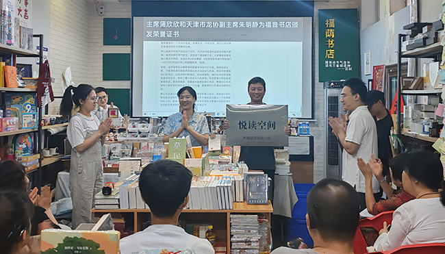 為進(jìn)一步培育書香文化,營造一個熱愛閱讀、積極開口朗讀的良好氛圍,市聾協(xié)與福蔭書店共同掛牌成立了“悅讀空間”聽障賦能誦讀基地。市聾協(xié)主席卜欣欣、副主席朱明靜、書店負(fù)責(zé)人為“悅讀空間”、“愛心助殘單位”揭牌。來自南開大學(xué)的“語伴”大學(xué)生志愿者團(tuán)隊伴隨聽障朋友開啟天籟之門,協(xié)助聽障朋友康復(fù)口語表達(dá)能力。