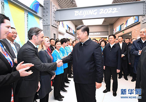 2月1日,中共中央總書(shū)記、國(guó)家主席、中央軍委主席習(xí)近平在北京看望慰問(wèn)基層干部群眾,考察北京冬奧會(huì)、冬殘奧會(huì)籌辦工作。這是1日下午,習(xí)近平在石景山首鋼園區(qū)冬奧組委辦公樓,看望慰問(wèn)北京冬奧組委工作人員和志愿者代表。 新華社記者 謝環(huán)馳 攝?