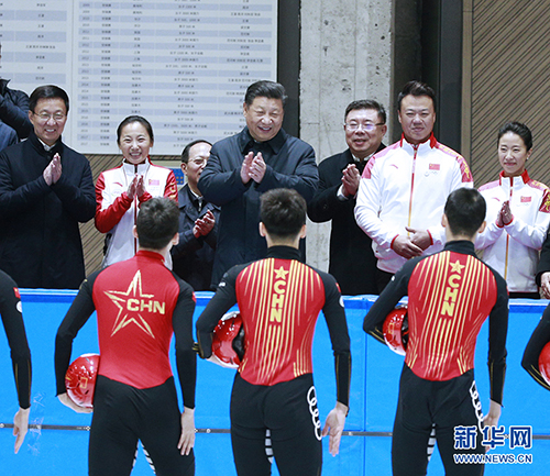 2月1日,中共中央總書(shū)記、國(guó)家主席、中央軍委主席習(xí)近平在北京看望慰問(wèn)基層干部群眾,考察北京冬奧會(huì)、冬殘奧會(huì)籌辦工作。這是1日下午,習(xí)近平在國(guó)家冬季運(yùn)動(dòng)訓(xùn)練中心勉勵(lì)正在訓(xùn)練備戰(zhàn)的運(yùn)動(dòng)員、教練員。 新華社記者 謝環(huán)馳 攝?