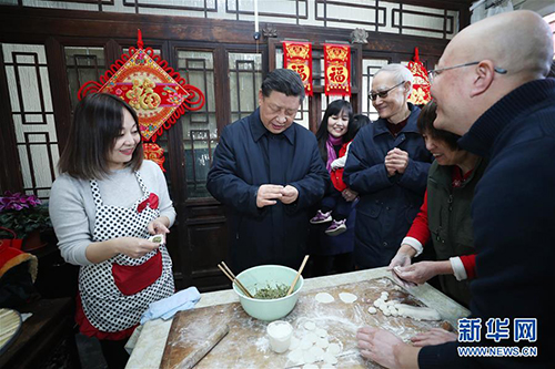 草廠胡同過(guò)去居住條件比較差,如今經(jīng)過(guò)改造后,居住環(huán)境大為改善,體現(xiàn)了“老北京新氣象,老胡同新生活”。習(xí)近平先后走進(jìn)兩個(gè)居民院落,了解老城區(qū)改造后居民住房條件改善情況。看到總書(shū)記到來(lái),大家都很激動(dòng),紛紛向總書(shū)記問(wèn)好。習(xí)近平仔細(xì)詢(xún)問(wèn)他們?nèi)兆舆^(guò)得怎么樣、冬天用什么取暖、每個(gè)月的電費(fèi)要多少、年貨備齊沒(méi)有,祝愿他們生活幸福。居民侯雅明現(xiàn)場(chǎng)寫(xiě)下一副春聯(lián),給總書(shū)記拜年。習(xí)近平高興地拿起一幅“?!弊?#xff0c;親自貼到門(mén)上,給這里的老街坊們拜年。習(xí)近平表示,中國(guó)共產(chǎn)黨的追求就是讓老百姓生活越來(lái)越好。在朱茂錦家,習(xí)近平同他們一家人包餃子、炸饹馇、聊家常。大家告訴總書(shū)記,這些年,老城區(qū)改造后居住條件和生活環(huán)境大為改善,大家衷心感謝共產(chǎn)黨。習(xí)近平強(qiáng)調(diào),黨中央十分關(guān)心老城區(qū)和棚戶(hù)區(qū)改造,就是要讓大家居住更舒適、生活更美好,解決好大家關(guān)心的實(shí)際問(wèn)題,讓大家住在胡同里也能過(guò)上現(xiàn)代生活。