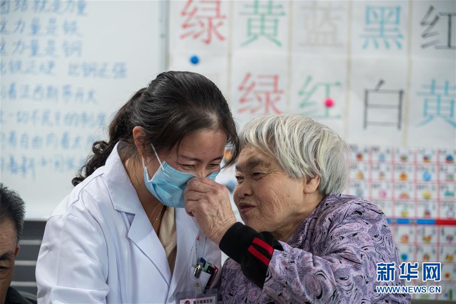 10月12日,在湖南省邵陽市隆回縣隆回魏源醫(yī)院,一名老年公寓的老人跟醫(yī)護(hù)人員親密交流。 湖南省邵陽市隆回縣隆回魏源醫(yī)院于2010年開設(shè)醫(yī)養(yǎng)結(jié)合科,聚焦失能失智老人“醫(yī)養(yǎng)結(jié)合”,從日常護(hù)理、醫(yī)療康復(fù)、休閑娛樂、餐飲服務(wù)等方面服務(wù)在住老人。目前在住老人年齡從60歲到105歲不等,以農(nóng)村老人為主(占70%以上),失能、半失能老人60%;失智老人占30%;其他老人10%。 新華社記者 才揚(yáng) 攝