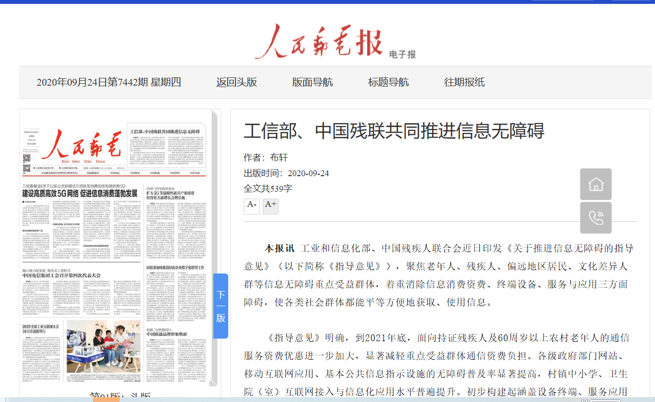 中國(guó)郵電報(bào) 工信部、中國(guó)殘聯(lián)共同推進(jìn)信息無(wú)障礙