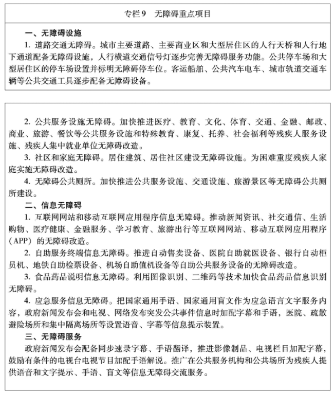 (五)全面推進(jìn)無(wú)障礙環(huán)境建設(shè),讓殘疾人平等參與社會(huì)生活。