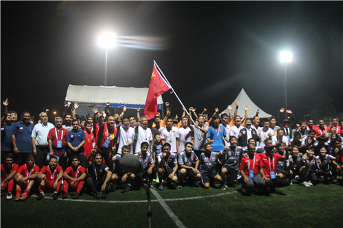 圖為盲人足球隊奪冠取得金牌后合影