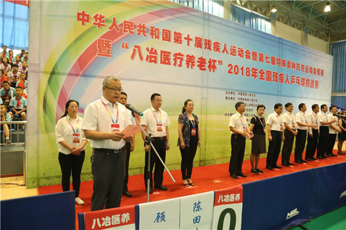7月22日-27日,由中國(guó)殘疾人聯(lián)合會(huì)主辦,中國(guó)殘疾人體育運(yùn)動(dòng)管理中心、甘肅省殘疾人聯(lián)合會(huì)、金昌市人民政府承辦,甘肅省殘疾人文體中心、金昌市殘疾人聯(lián)合會(huì)、金昌市體育局協(xié)辦的中華人民共和國(guó)第十屆殘疾人運(yùn)動(dòng)會(huì)暨第七屆特殊奧林匹克運(yùn)動(dòng)會(huì)預(yù)賽暨2018年全國(guó)殘疾人乒乓球挑戰(zhàn)賽在甘肅省金昌市金川區(qū)體育健身中心舉辦。來自中國(guó)殘疾人體育運(yùn)動(dòng)管理中心、甘肅省殘疾人聯(lián)合會(huì)、金昌市市委、市政府、市人大、市政協(xié)等單位的相關(guān)領(lǐng)導(dǎo)出席了開賽儀式。