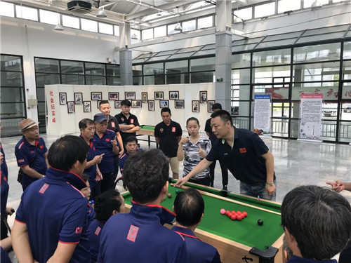 圖為斯諾克臺(tái)球項(xiàng)目示范推廣活動(dòng)現(xiàn)場(chǎng)