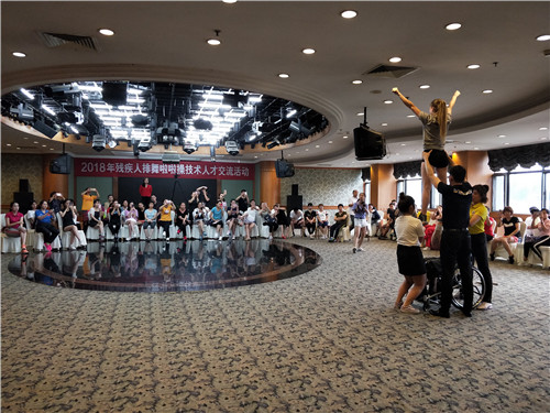 2018年7月29日上午,由中國殘疾人體育運動管理中心聯(lián)合國家體育總局體操運動管理中心共同主辦,全國排舞廣場舞推廣中心江蘇省中心、江蘇省社會體育管理中心及揚州韻力體育文化傳播有限公司承辦的2018年殘疾人排舞、啦啦操技術(shù)人才交流活動在江蘇省揚州市舉辦。來自河北山西、遼寧等全國16個省、市的70名基層殘疾人體育健身工作指導人員參與本次交流活動。