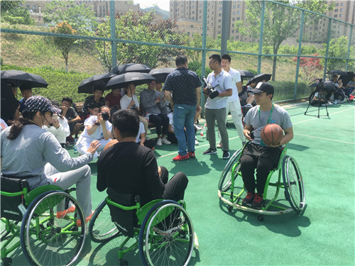 5月17日,在第二十九個“全國助殘日”即將到來之際,中國疾人體育運動管理中心聯(lián)合山東省康復(fù)研究中心共同舉辦了2019年殘疾人體育服務(wù)進基層系列活動暨輪椅籃球公益行濟南站活動。世界吉尼斯紀(jì)錄獲得者腦癱青年高廣利、山東省脊髓損傷者“希望之家”的16名脊髓損傷人員和來自山東省體育學(xué)院的100余名師生共同參與了本次輪椅籃球項目公益培訓(xùn)和推廣活動。
