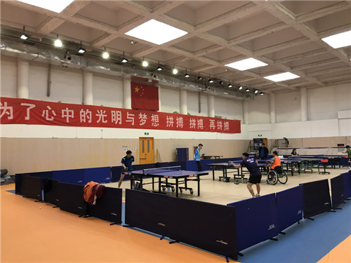 圖為殘奧冠軍班乒乓球?qū)m椨?xùn)練課