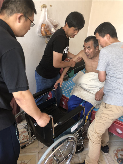 吳競軍書記攙扶殘疾人朋友試坐體管中心捐贈的輪椅