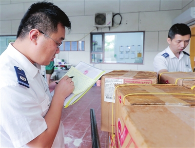 ②區(qū)市場(chǎng)監(jiān)督管理局工作人員對(duì)食材標(biāo)識(shí)、數(shù)量等信息進(jìn)行核查。