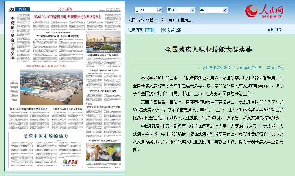 人民日報海外版 全國殘疾人職業(yè)技能大賽落幕