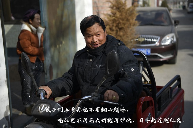 2月11日,張俊明準(zhǔn)備騎著電動三輪車去濱河家園移民村的集市采購物品。