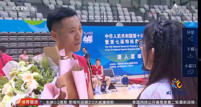 中央電視臺《體育晨報(bào)》殘運(yùn)會籃球賽場 濃濃愛意浪漫賽場