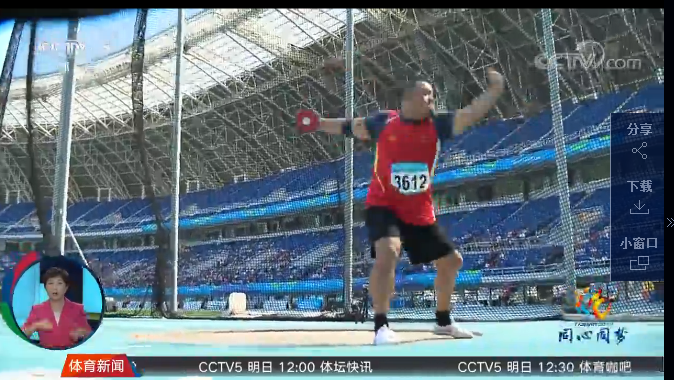 中央電視臺《體育新聞》 投擲“王者” 包攬殘運會三枚金牌