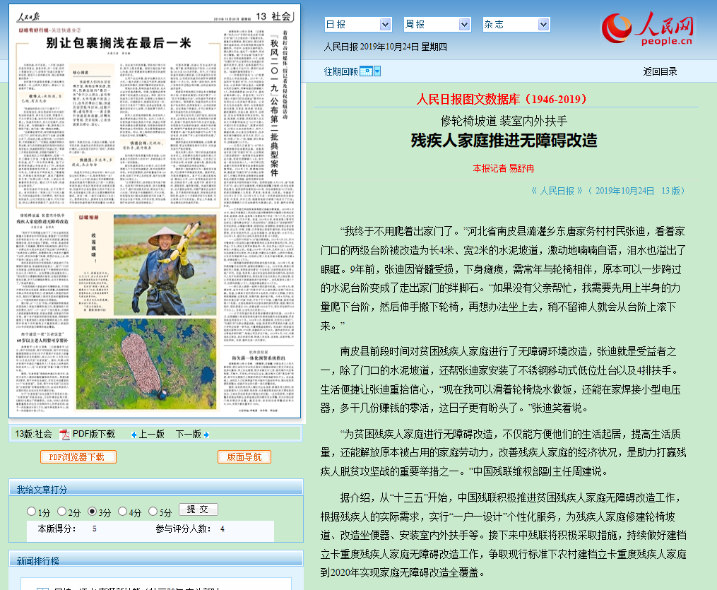 人民日?qǐng)?bào) 修輪椅坡道 裝室內(nèi)外扶手殘疾人家庭推進(jìn)無障礙改造