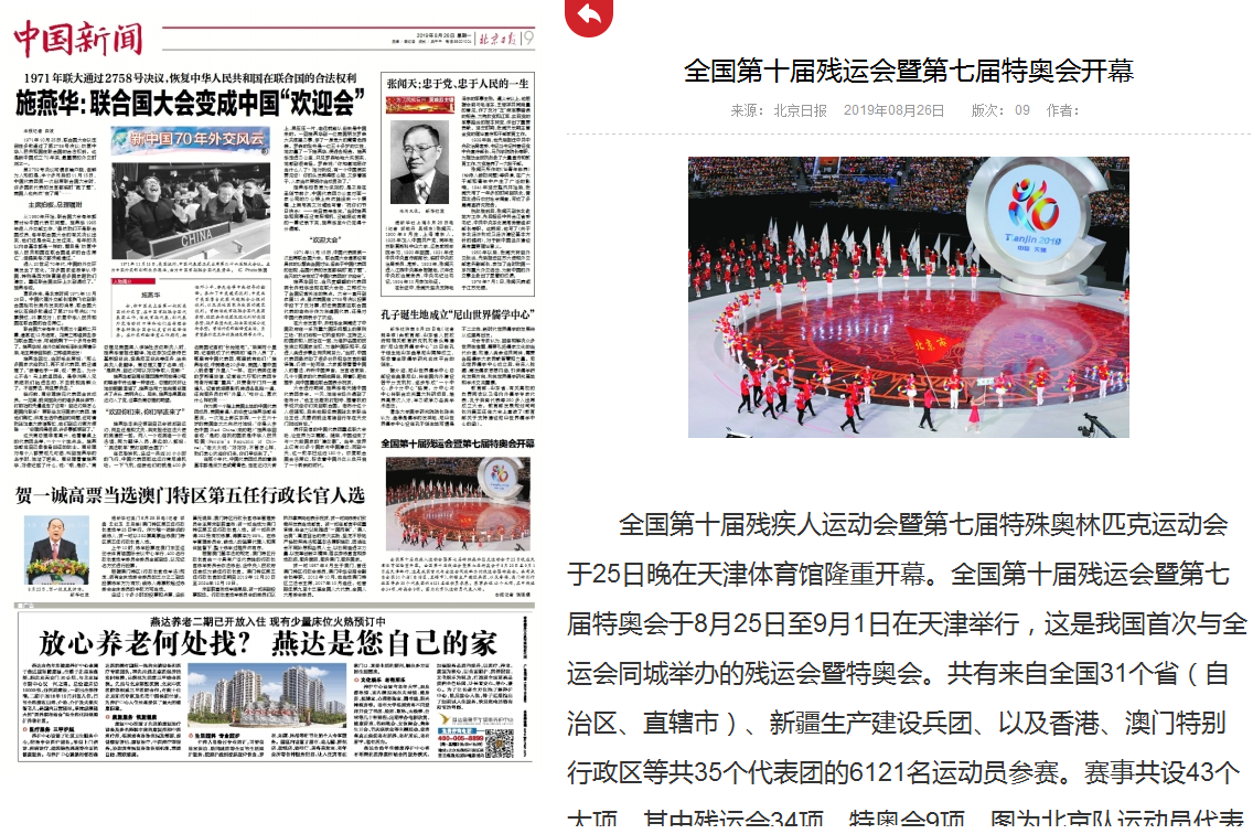 北京日?qǐng)?bào) 第十屆殘運(yùn)會(huì)暨第七屆特奧會(huì)在天津開幕