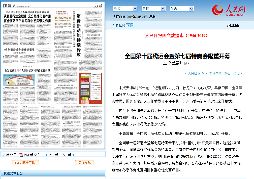 人民日?qǐng)?bào) 全國(guó)第十屆殘運(yùn)會(huì)暨第七屆特奧會(huì)隆重開(kāi)幕 王勇出席開(kāi)幕式