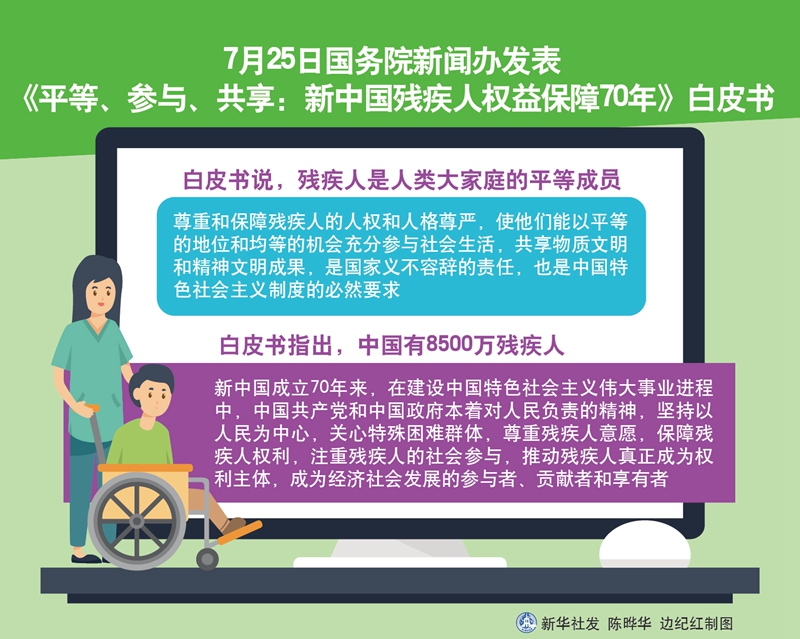 新華社 (圖表)7月25日國務(wù)院新聞辦發(fā)表《平等、參與、共享:新中國殘疾人權(quán)益保障70年》白皮書