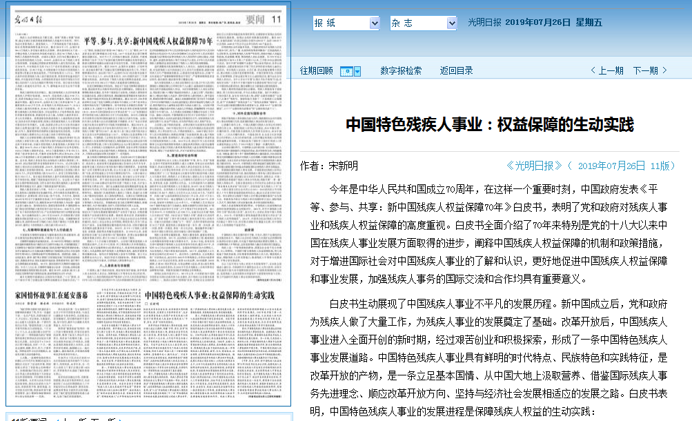 光明日報 中國殘疾人權(quán)利保障道路的基本特點