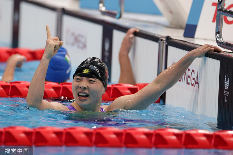 8月25日,里約殘奧4金得主張麗,在女子100米自由泳S5級決賽中以2分46秒53成功衛(wèi)冕,為中國游泳隊(duì)奪得東京殘奧會首枚游泳金牌。