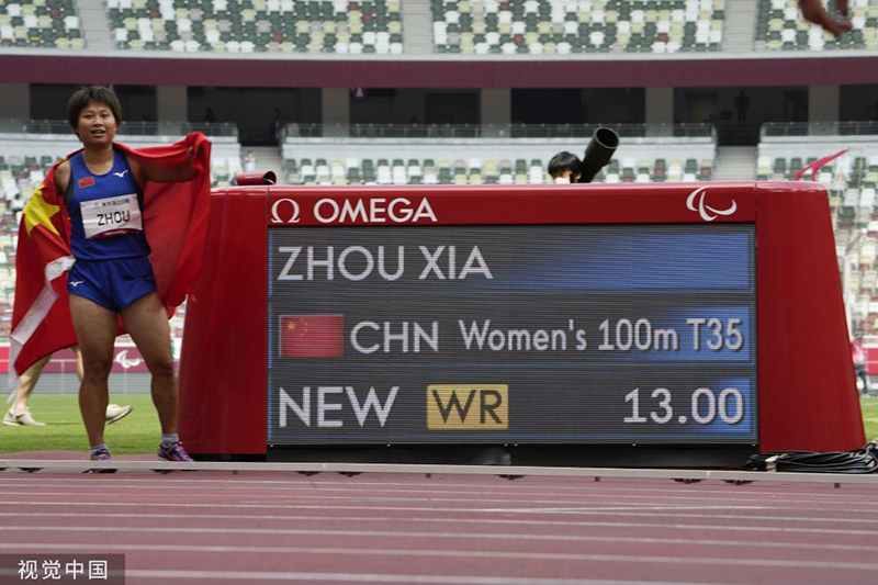 東京殘奧會女子百米T35級 周霞破世界紀(jì)錄奪金