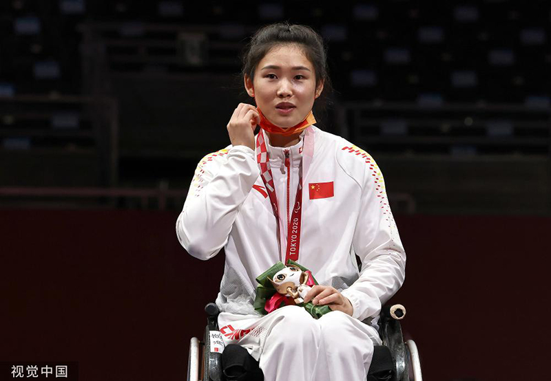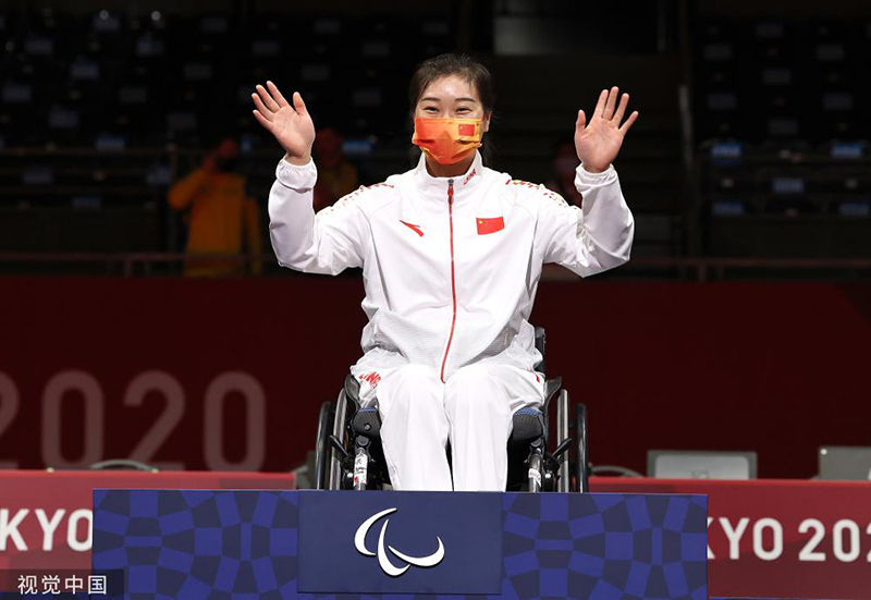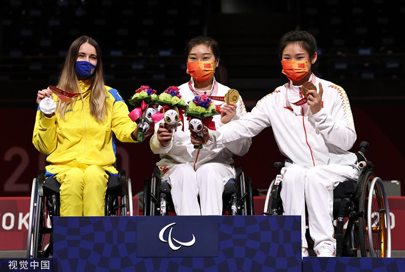 8月25日,東京殘奧會(huì)女子佩劍個(gè)人賽B級(jí)金牌賽,中國(guó)選手譚淑梅以15-7戰(zhàn)勝烏克蘭選手奧萊娜·費(fèi)多塔,奪得金牌。另一名中國(guó)選手肖蓉獲得該項(xiàng)目銅牌。