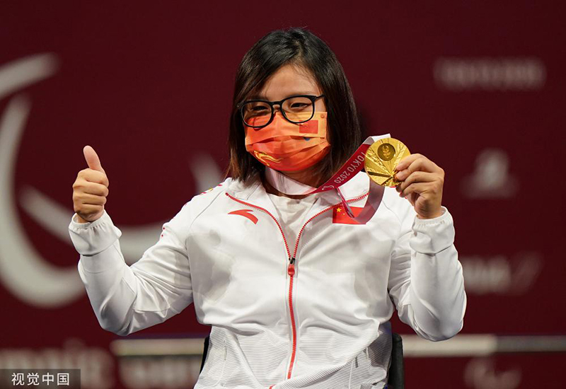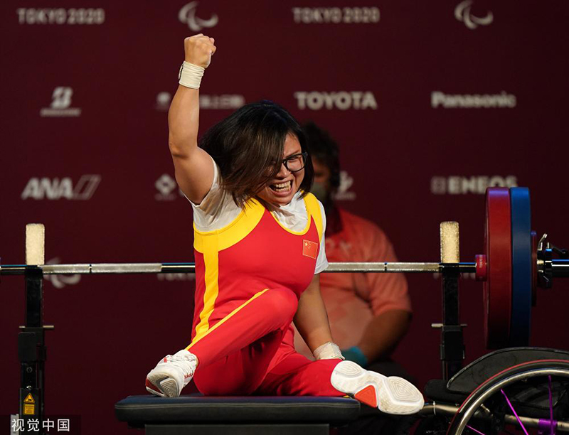 東京殘奧會舉重女子50公斤級決賽,中國選手胡丹丹獲得金牌。
