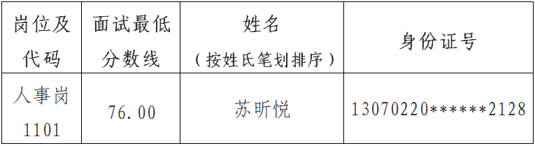 因個(gè)別考生放棄面試資格,根據(jù)事業(yè)單位招聘工作有關(guān)規(guī)定,在筆試合格的考生中,按照成績(jī)從高到低的順序,遞補(bǔ)下列1名考生為面試人選: